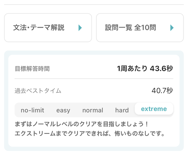 全問を確実に正解し、さらにextremeのスピードで即答できる状態まで復習することで、学習の密度が一気に上がります。